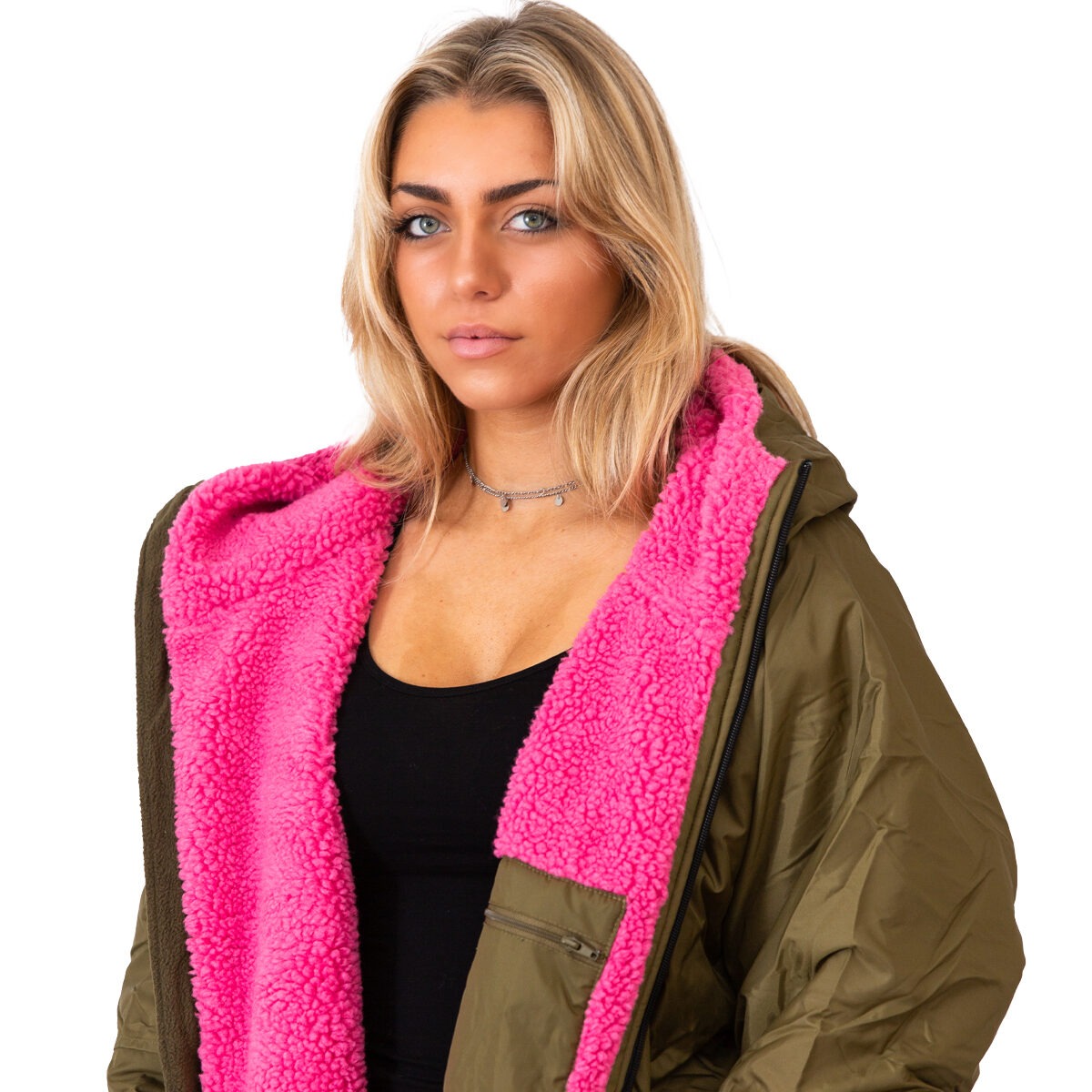 V1 Green Weatherproof Robe With Pink Fleece Lining